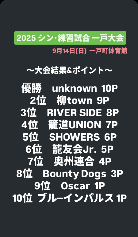 大会名称 | 2025 シン・練習試合 一戸大会 |